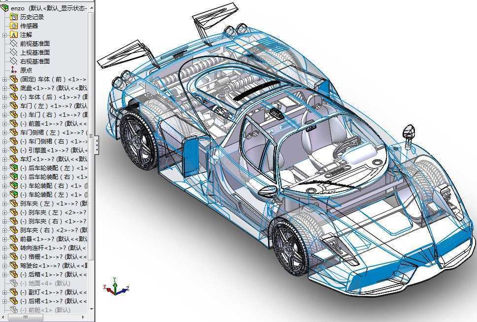 3D模型法拉利Enzo跑车模型Solidworks设计图形和文件如下:
