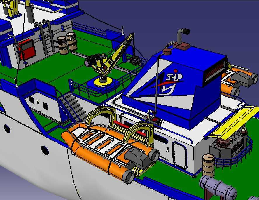 3D模型作业船CATIA V5 R21设计模型图形如下: