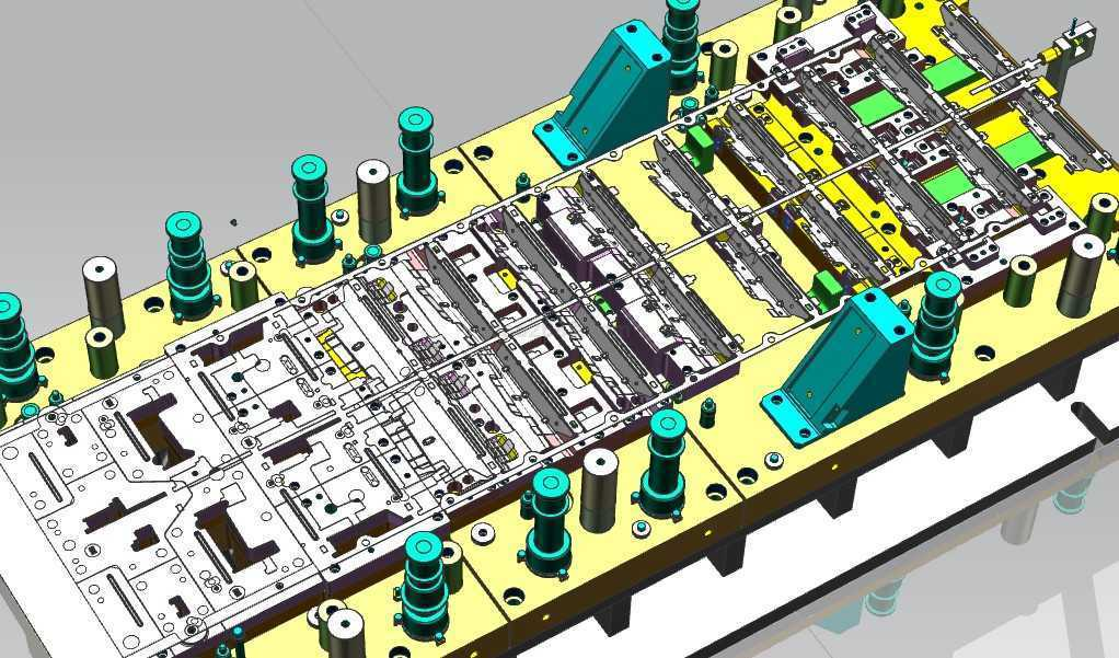 3D模型级进模(连续模)UG设计模型图形如下:
