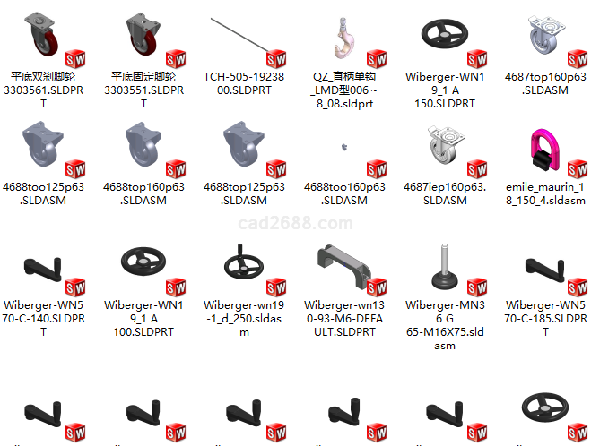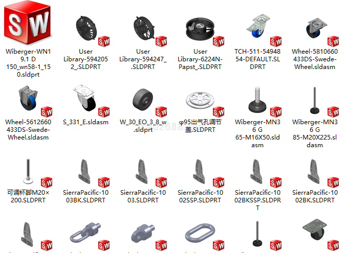 SolidWorks五金件零件模型库包括1500个模型文件,部分文件列表如下: