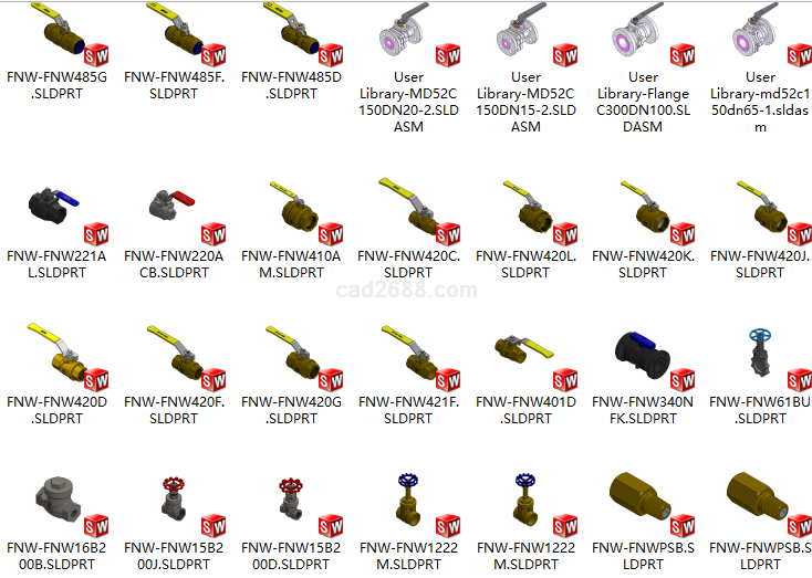《SolidWorks阀门模型库》主要是提供阀门零部件图库,使零部件图库