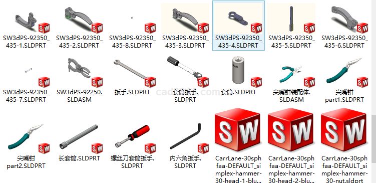 《SolidWorks工具模型库》软件主要是提供卡尺、铣刀、榔头