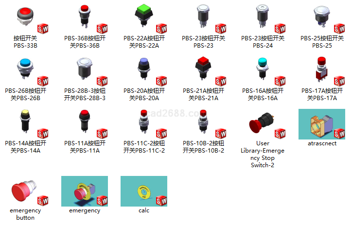 3D模型按钮开关3D模型Solidworks设计,包括常用开关。