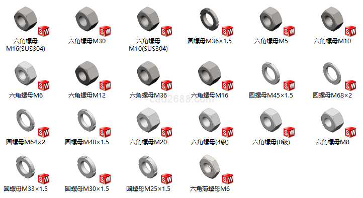 3D模型螺母3D模型Solidworks设计模型图形如下: