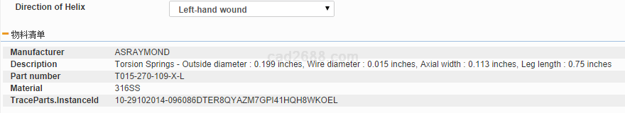 3D模型美国ASRAYMOND扭转弹簧316SS模型igs格式产品模型图形如下:
