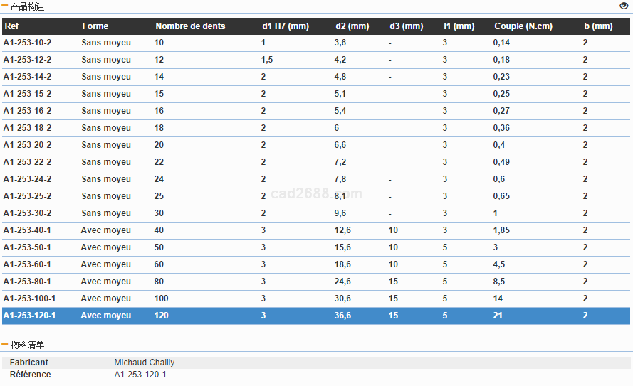 3D模型法国MICHAUG_CHAILLY右边正齿轮A1_253模型igs格式产品模型图形如下: