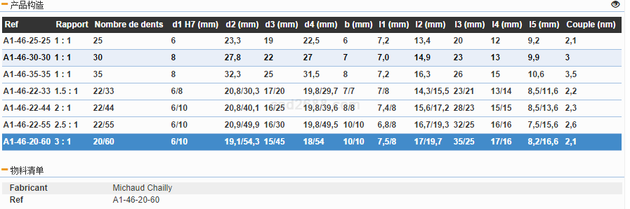 3D模型法国MICHAUD_CHAILLY螺旋斜齿轮A1_46模型igs格式产品模型图形如下: