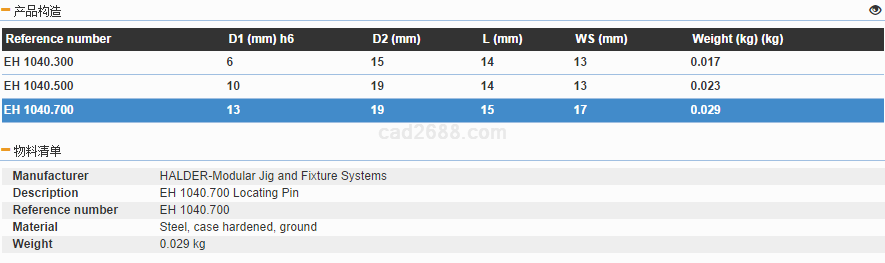 3D模型德国HALDERV定位元素圆柱销EH1040_300-700模型为0元购产品,注册会员后,即可免费购买下载0元购产品,在订单详细信息中点击下载链接,下载该文件!