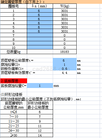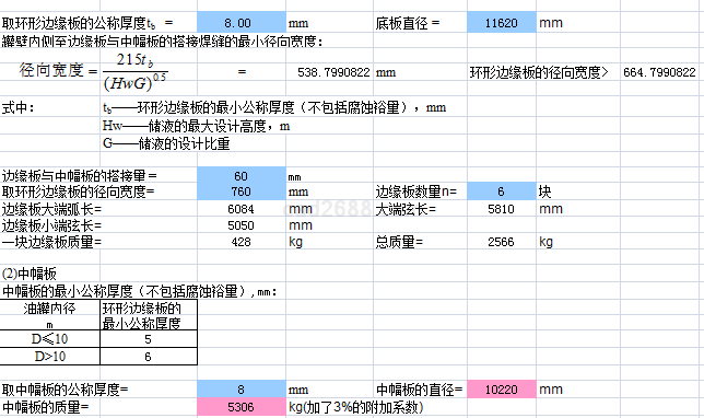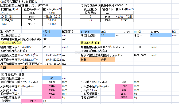拱顶储罐计算内容如下: