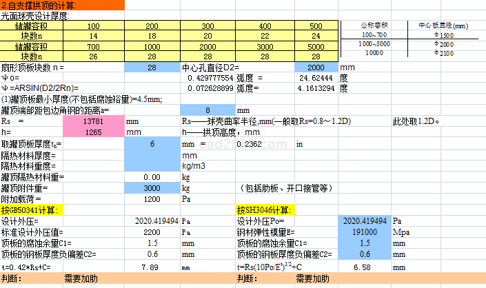 拱顶储罐计算