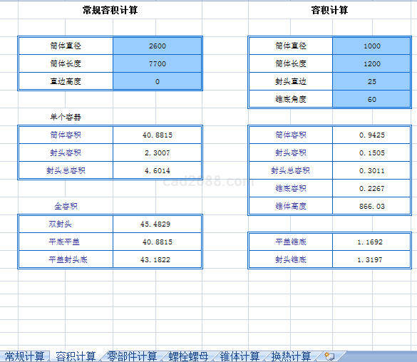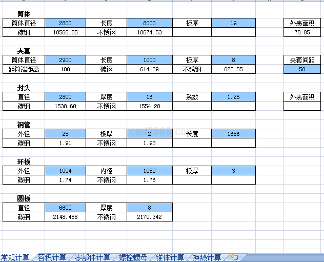 化工设备计算内容如下: