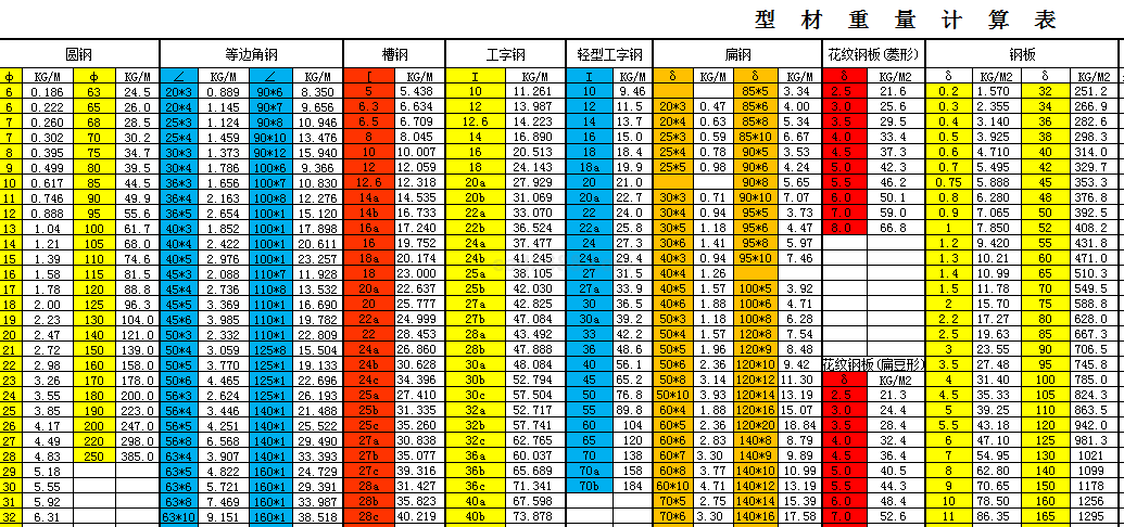 材料重量计算内容如下: