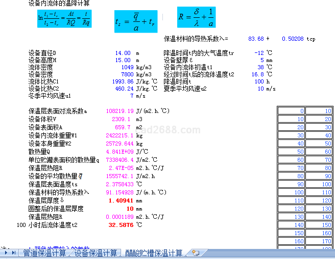 设备内流体降温计算内容如下:
