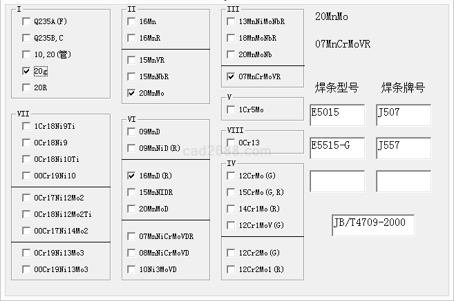 焊接材料选择计算内容如下: