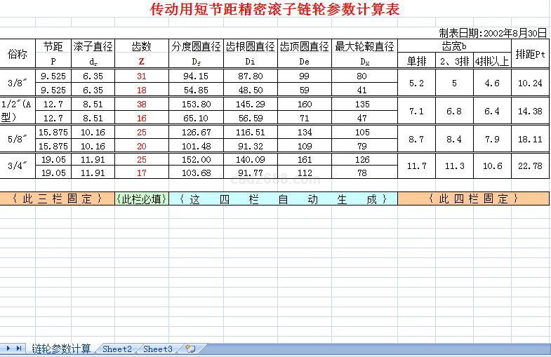 滚子链轮计算内容如下: