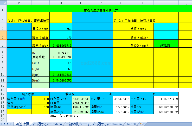 管线流速和管径计算内容如下: