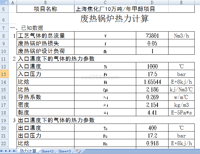 废热锅炉热力计算内容如下: