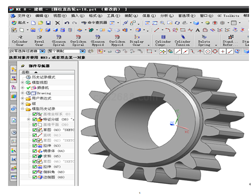 A.使用NX创建模型。自NX 7.5始,NX附带了GC工具包:从而使复杂的齿轮建模变得