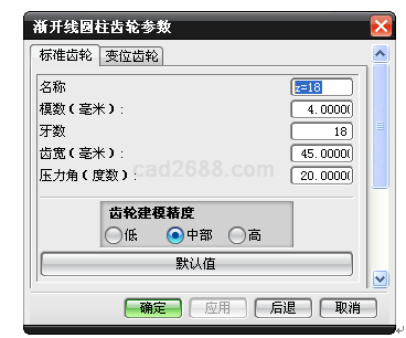 圆柱直齿轮的建模(模数m=4,齿数z=18,齿宽b=45,压力角α=20°)