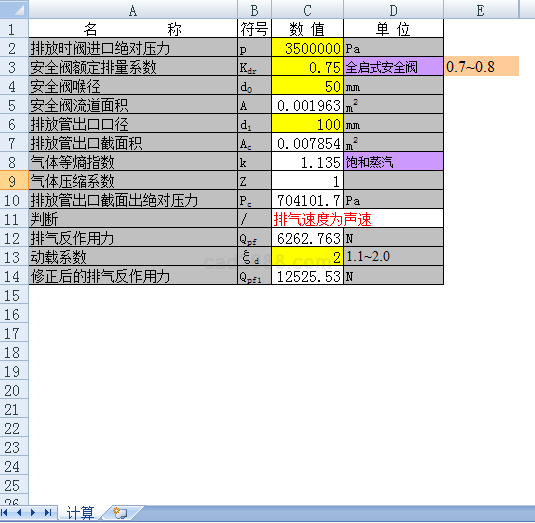 安全阀反作用力计算内容如下: