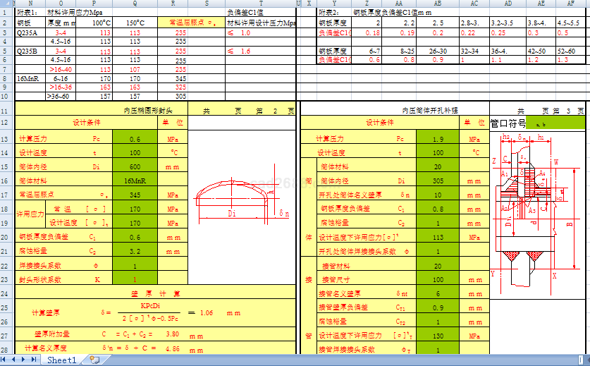 压力容器计算内容如下: