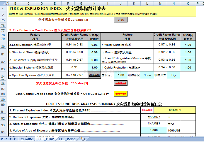 火灾爆炸指数计算内容如下:
