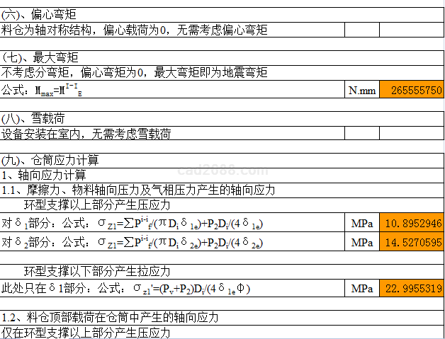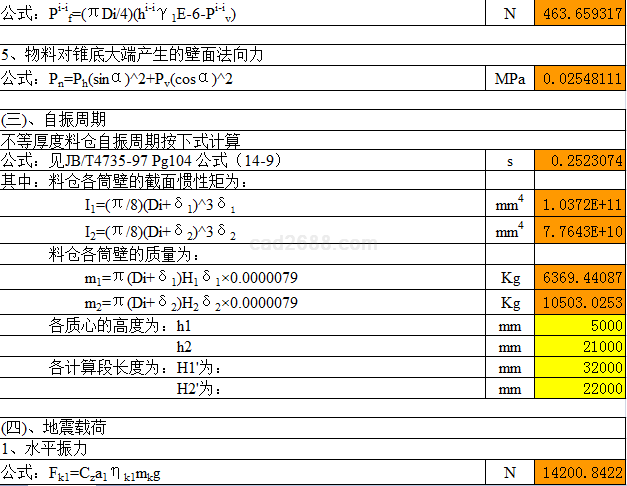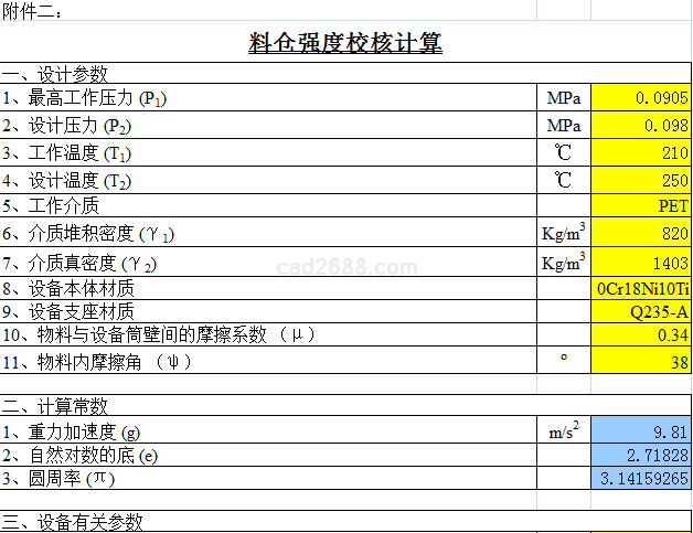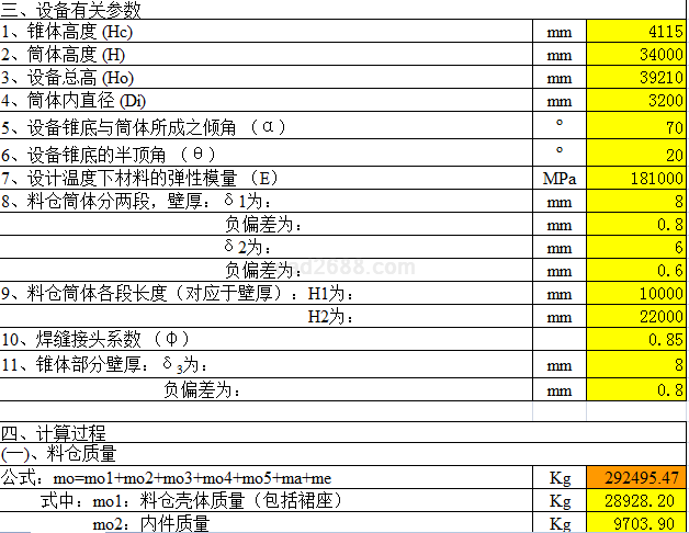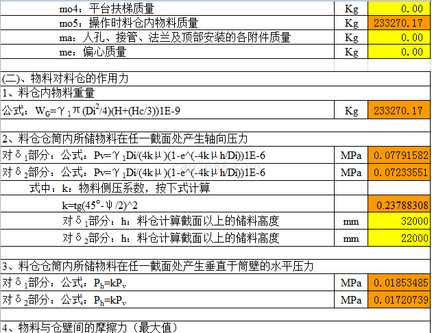 料仓强度校核计算内容如下: