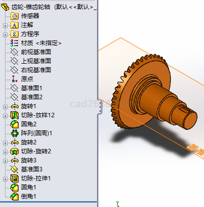 锥齿轮轴模型Solidworks设计格式模型如下: