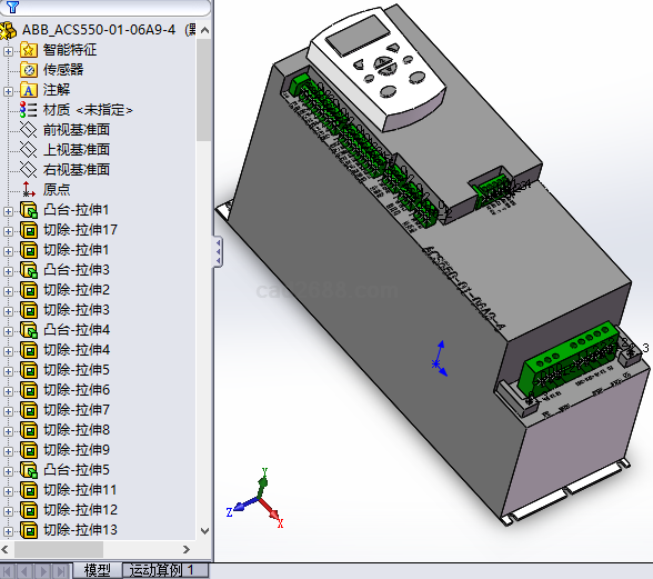 ABB_ACS550-01-06A9-4 变频器Solidworks设计模型如下: