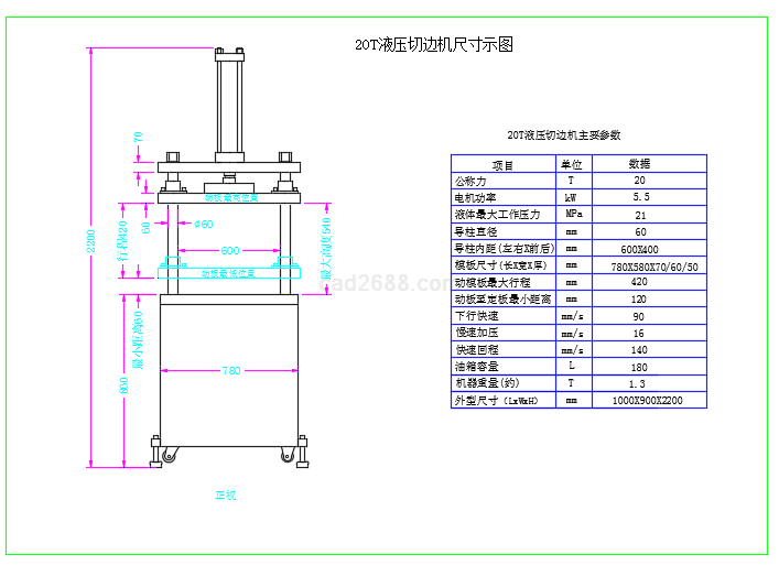 20T油压机示图CAD图纸产品为0元购产品,注册会员后,即可免费购买下载0元购产品,在订单详细信息中点击下载链接,下载该文件!