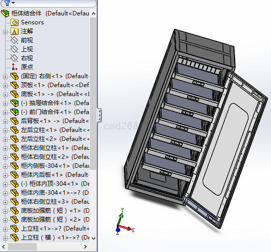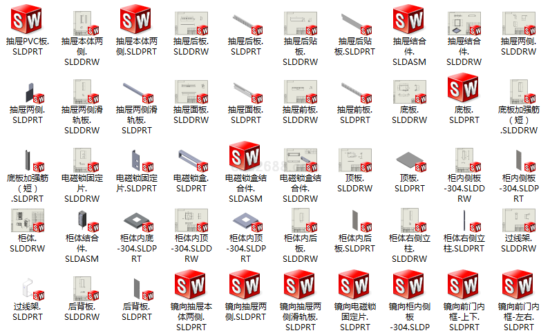 在线购买后,即可在订单中点击下载链接,下载该文件!医用柜子模型文件包括部件、零件及总装图,医用柜子模型Solidworks设计模型如下: