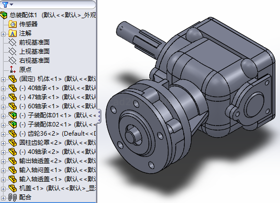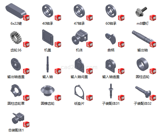 90°锥齿轮传动减速器模型Solidworks设计模型包括的文件如下: