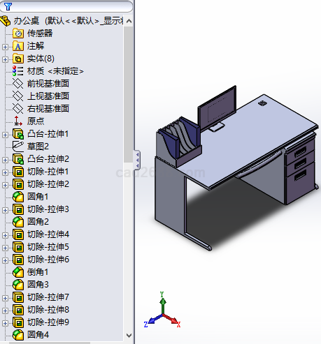 办公室用办公桌3D模型,带文件篮和文件夹,自带电脑显示器,有参数,可编辑源文件。