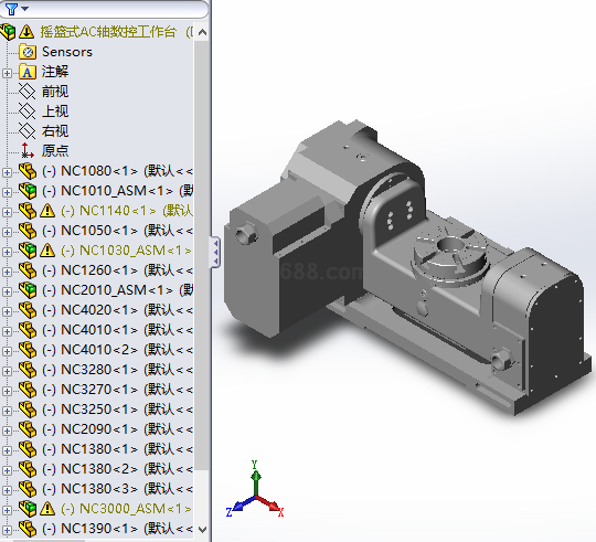 摇篮式AC轴数控工作台模型STP格式模型如下: