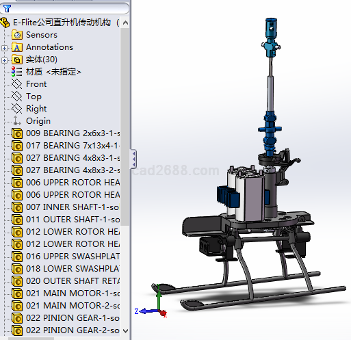 E-Flite公司直升机传动机构3D模型Solidworks设计模型内容如下: