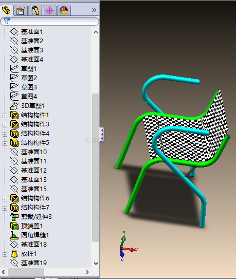 靠背椅3D模型Solidworks2012设计综合管件结构体模型内容如下: