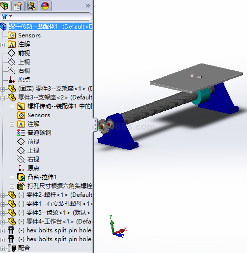 螺杆传动装配体3D模型Solidworks设计模型如下: