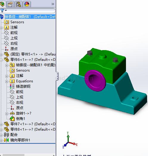轴支承座装配体3D模型Solidworks设计内容如下: