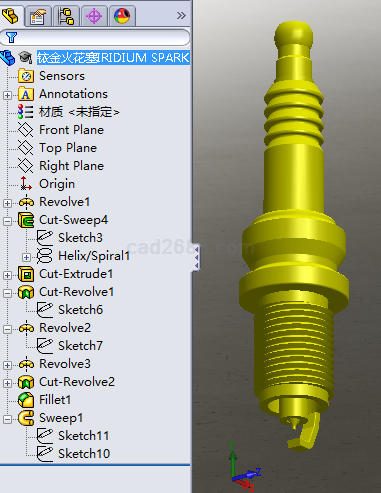 铱金火花塞3D模型Solidowrks设计格式图形如下: