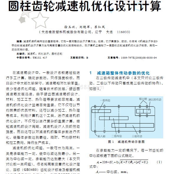 圆柱齿轮减速机优化设计计算PDF格式如下: