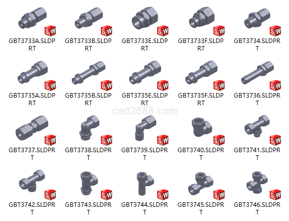 GBT3733-GBT3746卡套式管接头3D模型Solidworks设计内容如下:
