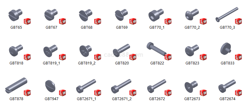 GBT65-GBT2674机螺钉3D模型Solidworks设计模型内容如下: