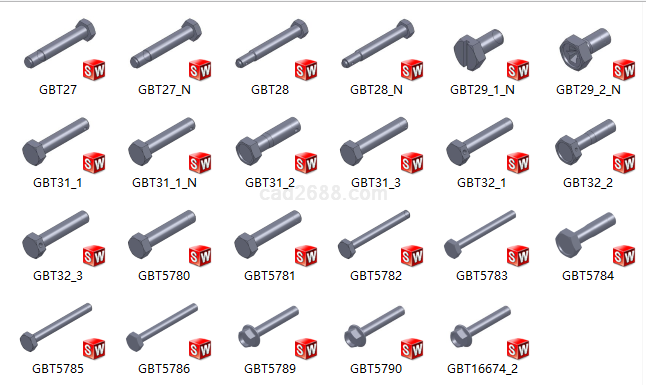 GBT27-GBT5790六角头螺栓3D模型Solidworks设计模型内容如下: