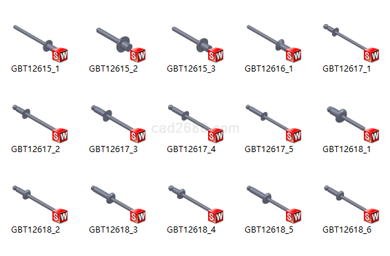 GBT12615_1-GBT12618_6抽芯铆钉3D模型Solidworks设计模型内容如下:
