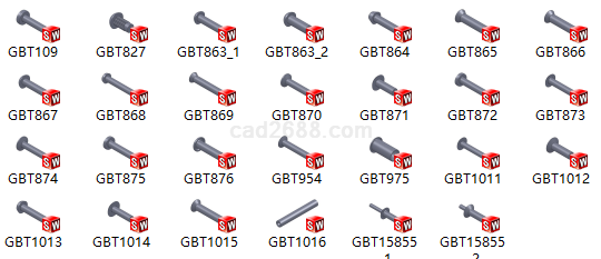 GBT863_1-GBT1016实心空心铆钉3D模型Solidworks设计模型内容如下:
