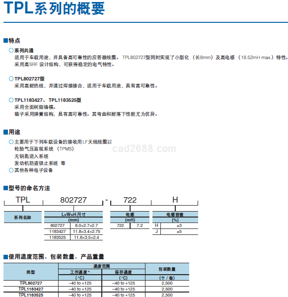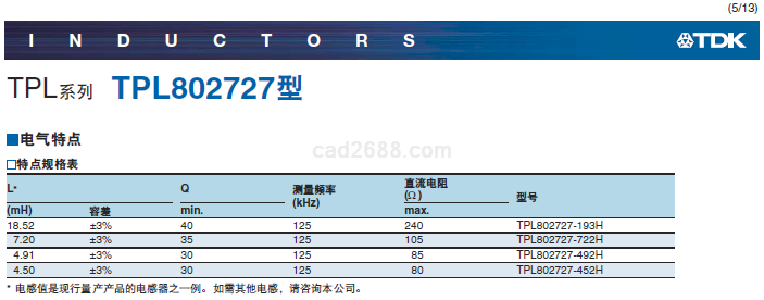 TDK感应器线圈c541_tpl样本PDF格式内容如下: