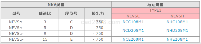 新宝VR_NEV_VR减速机_使用三菱马达CAD图纸DXF格式包括的部分内容如下: