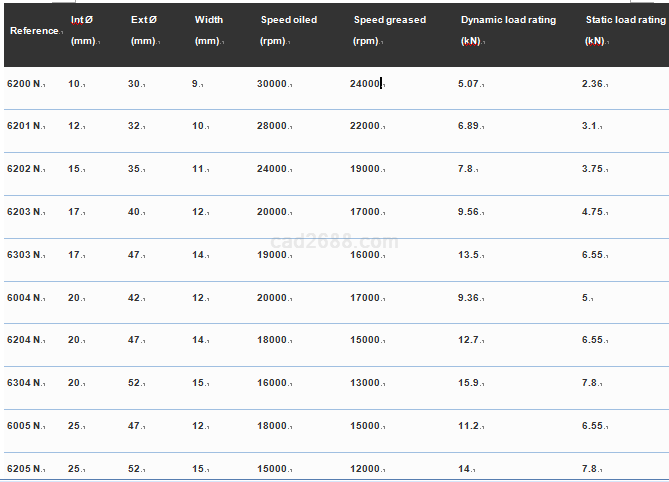 SKF带卡环槽的单列球轴承3D模型IGS格式模型内容及部分尺寸表如下: