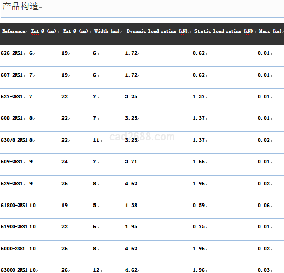 SKF带密封的单列深槽球轴承3D模型IGS格式模型内容及部分结构尺寸表如下: