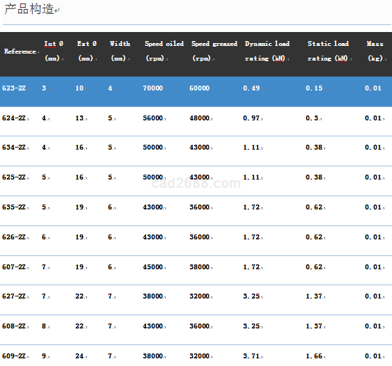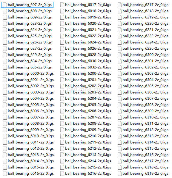 SKF单列深槽球轴承带有一个屏蔽3D模型IGS格式模型内容及部分结构尺寸表如下: